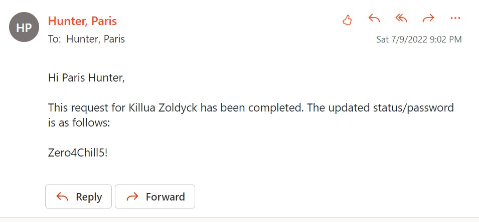 For Killua's account, let's use the hypothetical password of Zero4Chill5! and plug it into the spreadsheet back end.