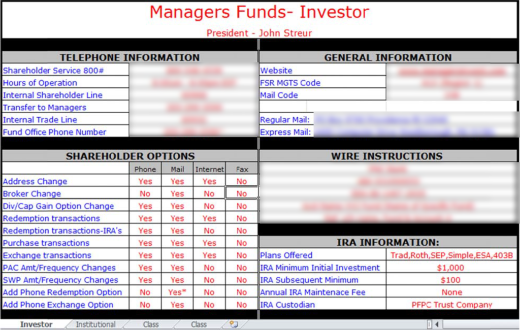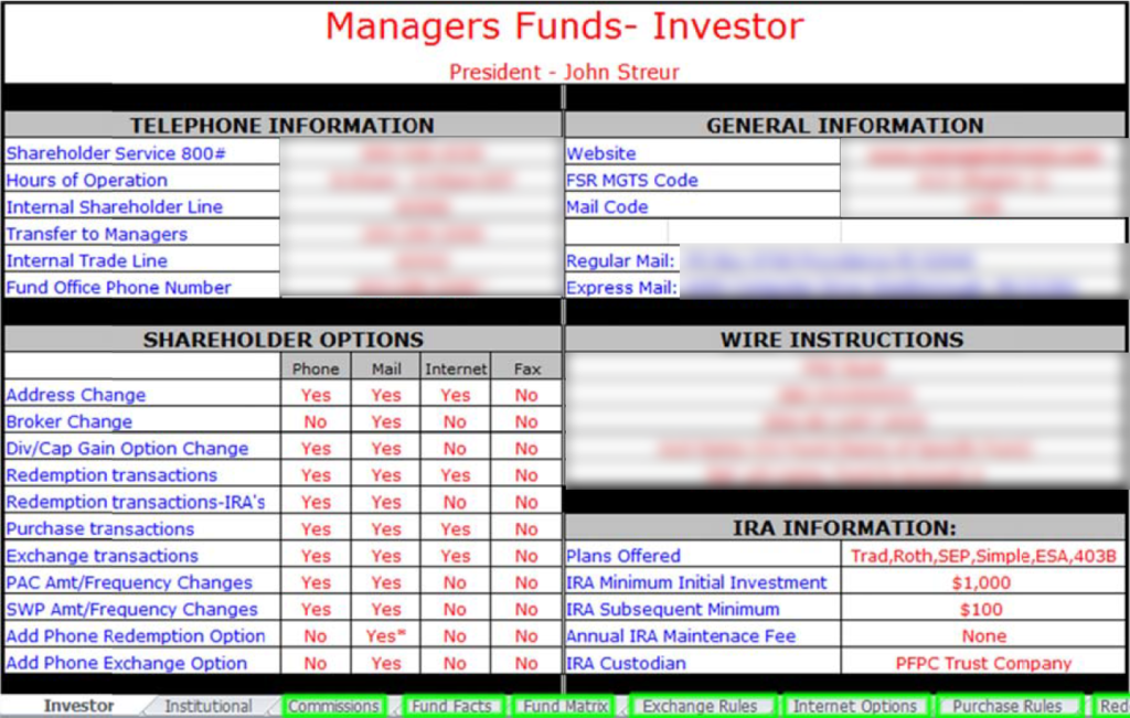 Not to mention, I did inform a few current representatives of this idea and they seemed to think it was an easier and natural evolution, especially since SharePoint requires a lot more clicks and scrolling to get same the information. And if the streamlined reference guide doesn't save time or money, it will be a simple fix to revert back to the original setup. That's why I suggest testing the change with 1-2 fund companies to start with.