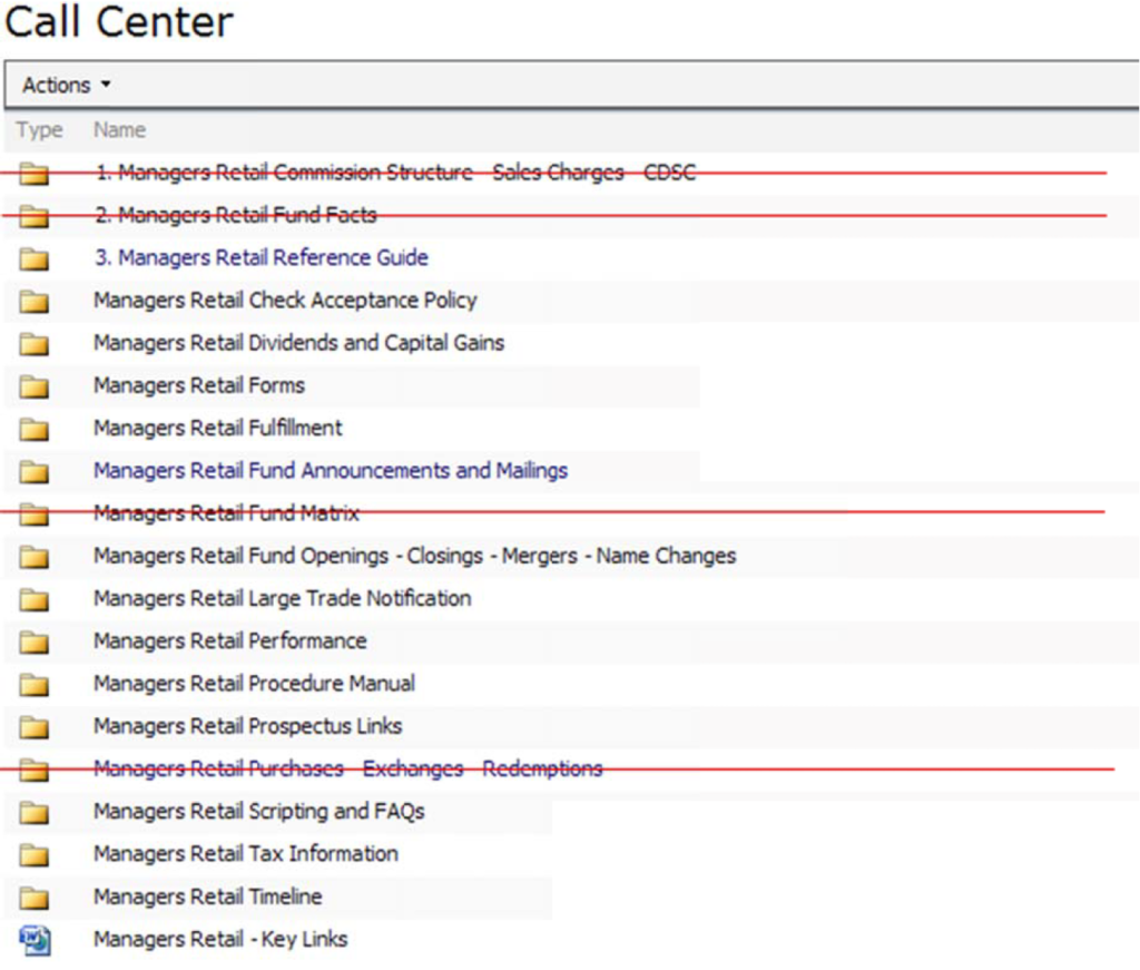 I am sure the SharePoint is demonstrated for new Fund Companies so here is another benefit for this change: Why not have new or current Fund Companies engage in ‘mock calls’ and see how easy it is for them to locate commonly referenced information for their own fund?
